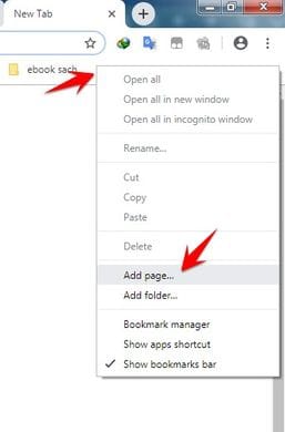 Bước 2: Click phải chuột vào thanh Bookmarks Bar chọn Add Page